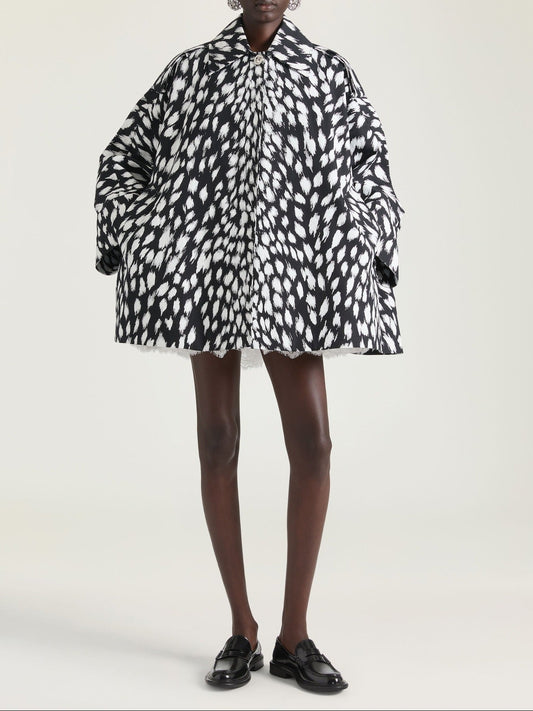 Givenchy Cocoon Short Trench in Cotton with Animal Print in Black