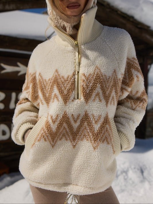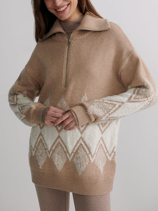 Varley Betty Jacquard Half Zip in Light Taupe