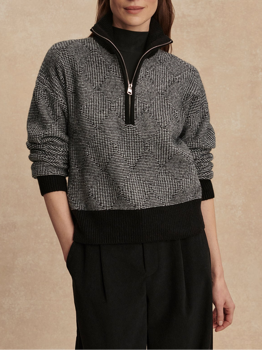Varley Sigrid Fairisle Half Zip Knit in Whitecap Grey