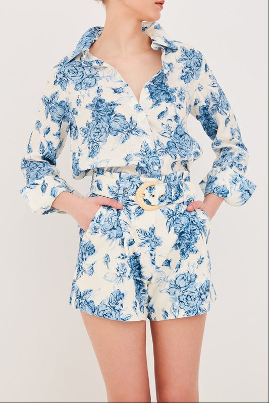 Cara Cara Perfect Shirt in Tossed Floral Blue