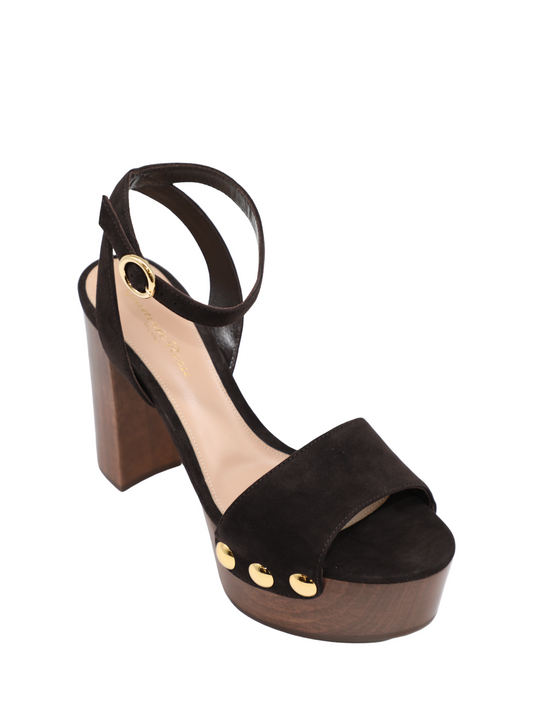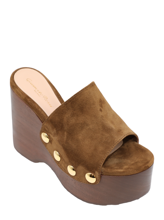 Gianvito Rossi Studded Suede Wooden Platform Wedge in Texas