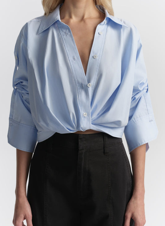 A.L.C. Leo Cropped Cotton Shirt in French Blue