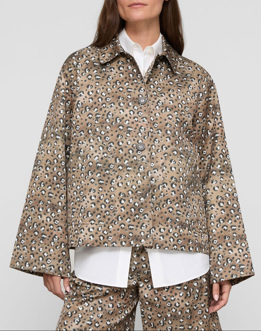 Lafayette 148 Leopard Print Cotton-Viscose Twill A-Line Topper in Brownstone Multi