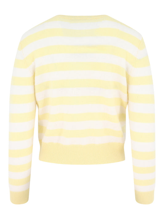 Alice + Olivia Carolann Striped Shrunken Crew Sweater in Butter/Ecru
