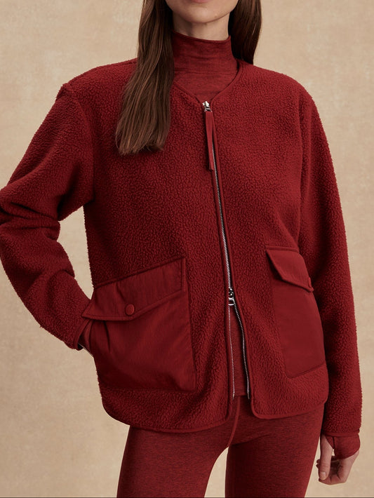 Varley Marina Collarless Fleece in Red Dahlia