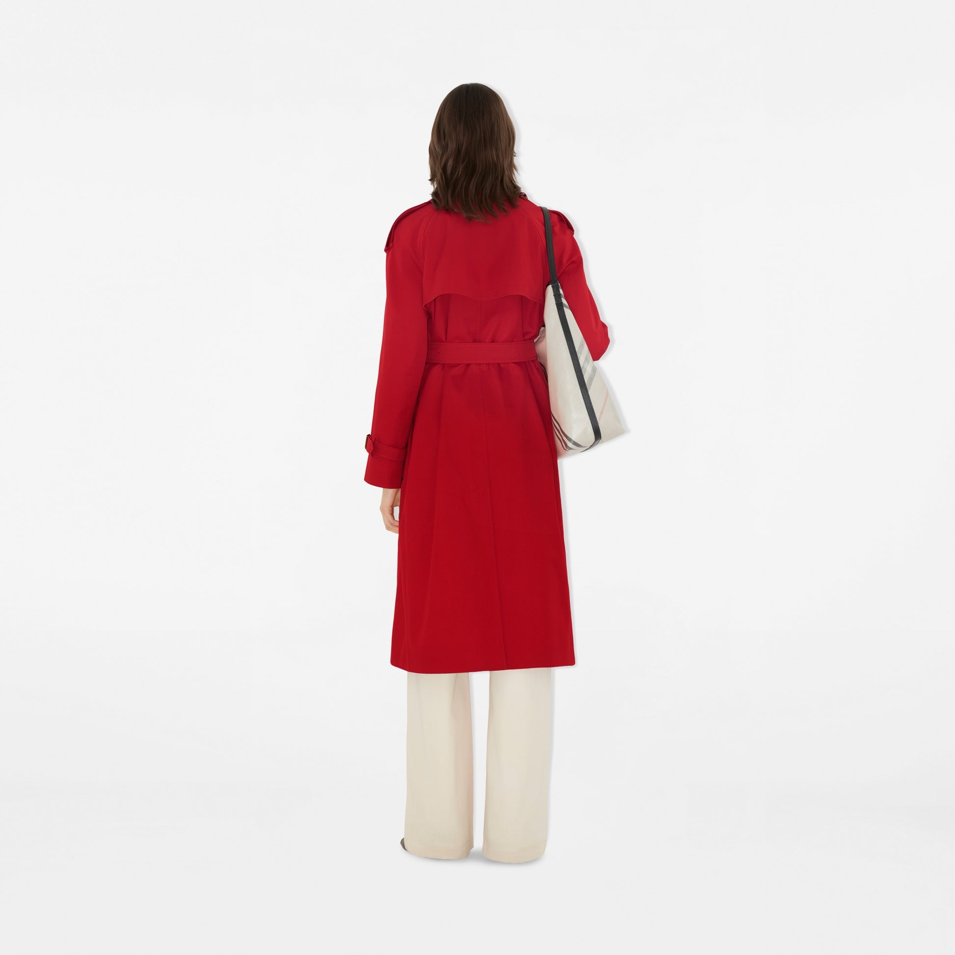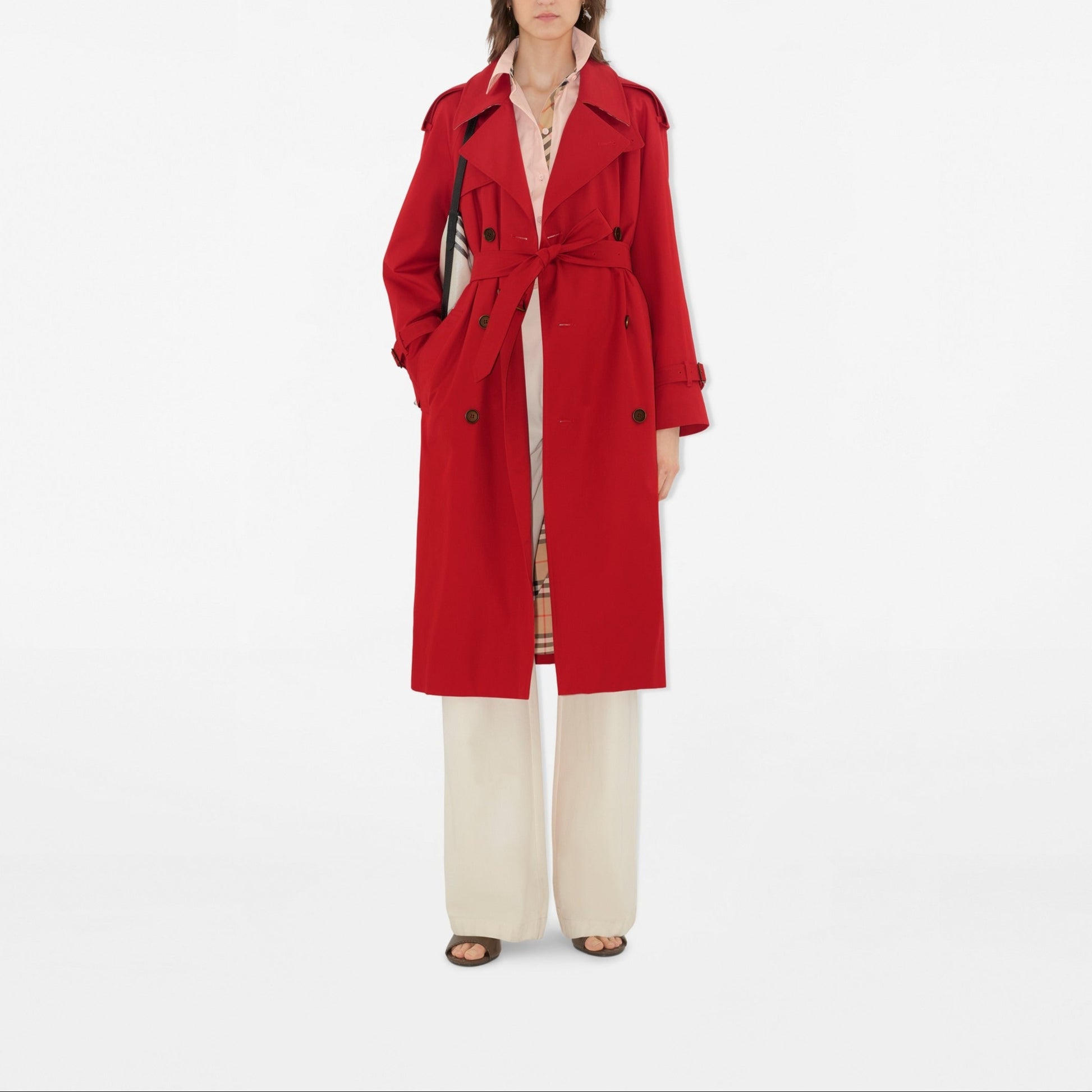 Expertly crafted in England, the Burberry Long Castleford Trench Coat in Currant offers superior protection with its water-resistant cotton gabardine. Its Burberry Check lining adds a touch of luxury, while the shield-shaped throat latch and antique hardware provide both style and functionality. With a regular fit and raglan sleeves, this coat is both tailored and comfortable.