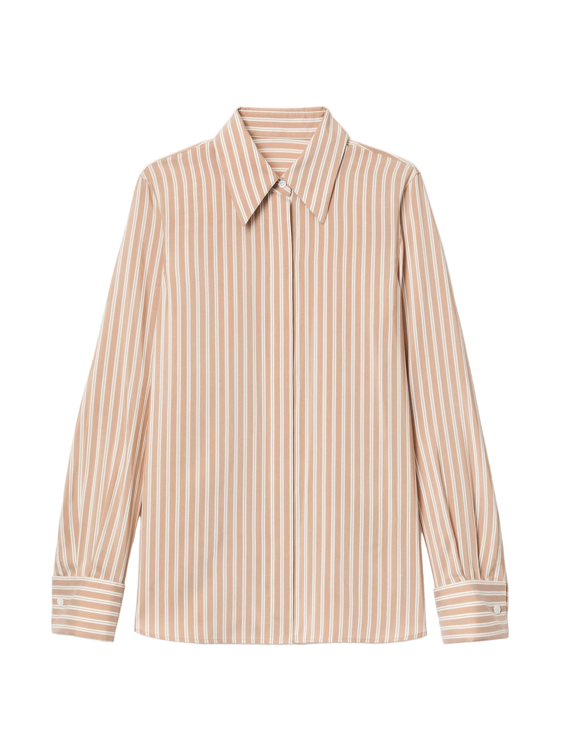 Lafayette 148 Striped Silk French Cuff Blouse in Camel Multi