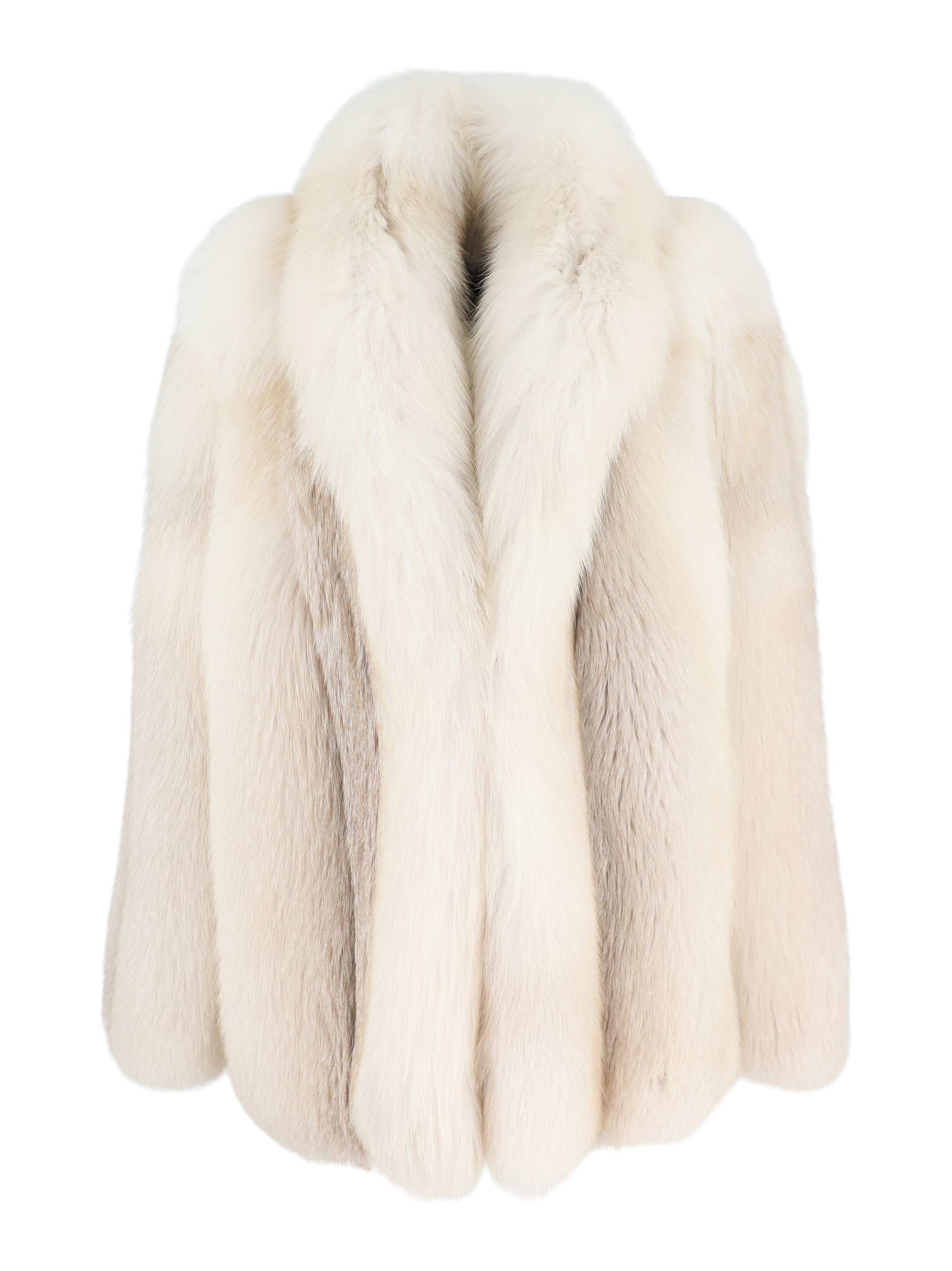 Crafted from luxurious 100% fox fur, this LAPOINTE coat exemplifies refined elegance with its mid-length silhouette and sophisticated shawl collar. The invisible double hook closure ensures a seamless, polished appearance, while discreetly placed side pockets offer practical functionality. The butter ivory tone delivers timeless versatility, making this piece an investment-worthy addition to any discerning wardrobe.