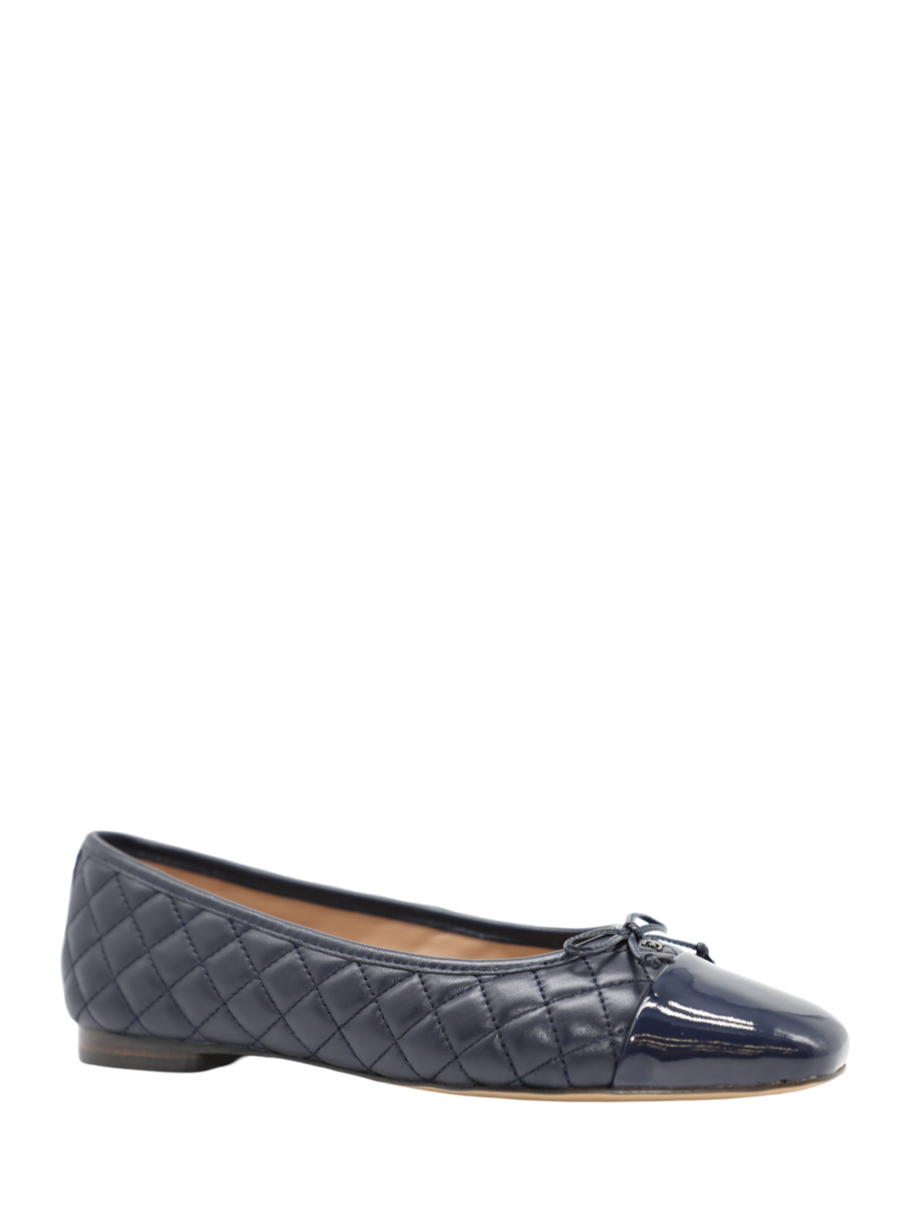 The Sam Edelman Marilyn Ballet Flat in Midnight Blue is a chic and versatile shoe. With its navy quilted design and patent toe, this ballet flat is both stylish and sophisticated. The bow detail adds a touch of femininity. Perfect for any occasion, this flat is the epitome of comfort and style.