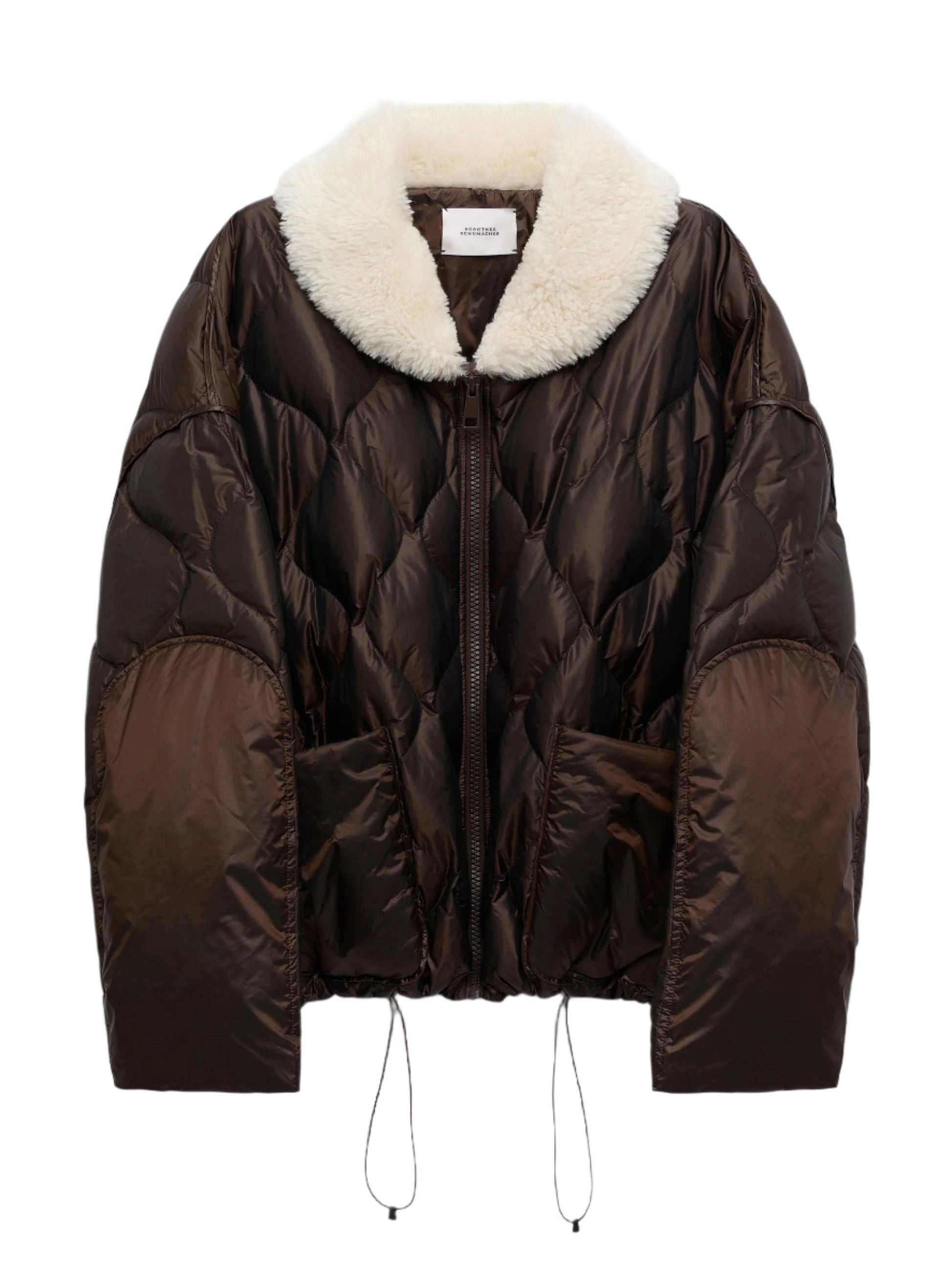 Dorothee Schumacher Quilt Jacket With Fur Collar in Chocolate