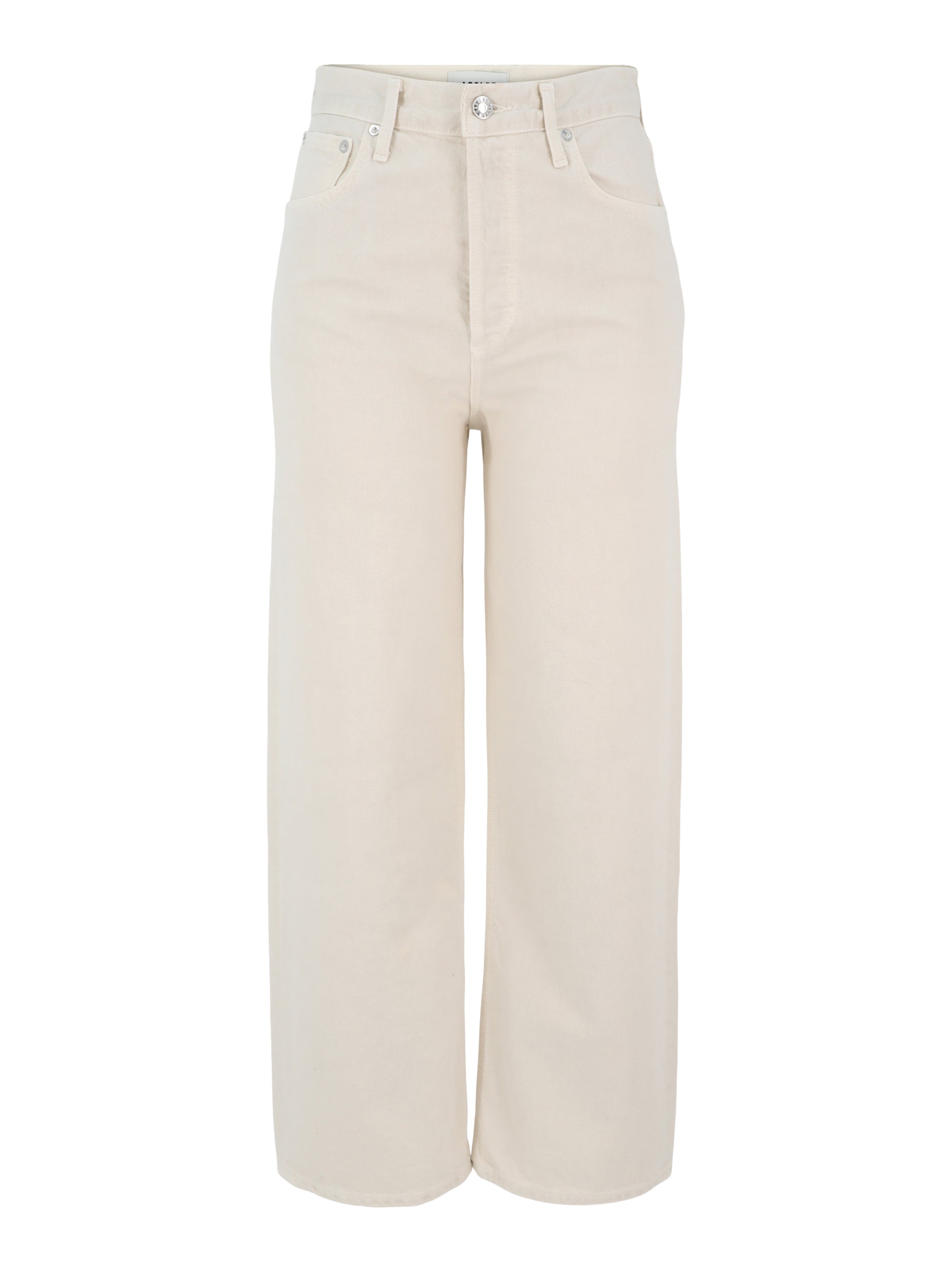 AGOLDE’s Ren Jeans in Brown Rice redefine the classic wide-leg style with a refined, contemporary edge. Made from 100% rigid regenerative cotton, these high-rise jeans offer durability and a soft feel. The light beige hue lends a sophisticated warmth, while the cropped wide-leg silhouette provides a relaxed yet flattering fit. Crafted from heavyweight denim, they deliver lasting comfort ideal for all-day wear. Pair with a fitted tee or chunky boots to effortlessly elevate your casual wardrobe.