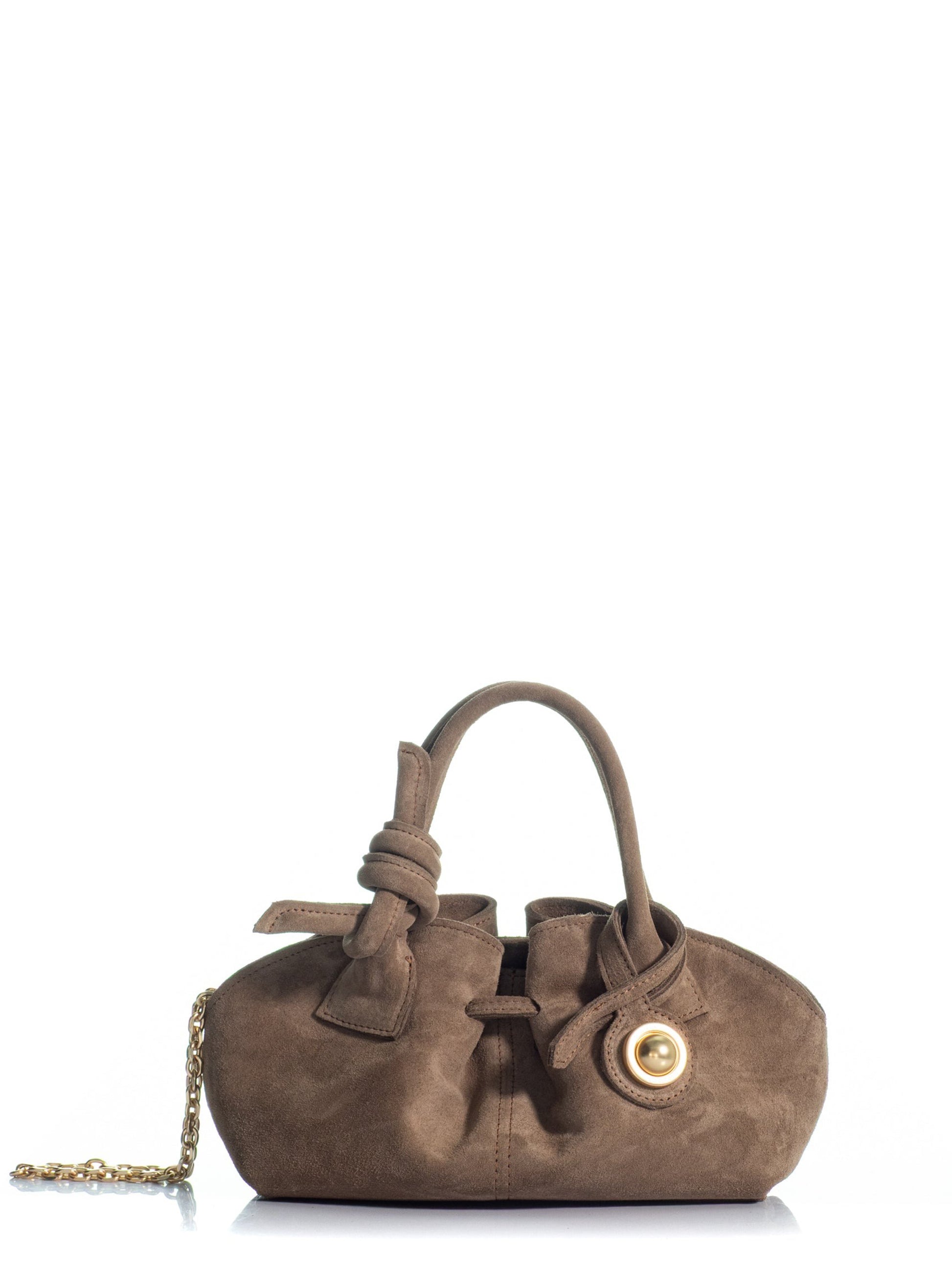 The Mini Swan 2.0 epitomizes sophisticated craftsmanship with its pristine white alabaster leather construction. This versatile piece features a distinctive knotted top handle paired with a gold-tone metal chain, allowing seamless transition between handheld and crossbody styling. The structured silhouette showcases Kooreloo's signature metal bull emblem and is lined with the brand's signature Athena-inspired fabric for refined interior elegance. A flat bottom base provides reliable stability, while the magnetic closure ensures secure, intuitive access. Includes a branded pouch. An investment in timeless luxury that transcends seasonal trends.