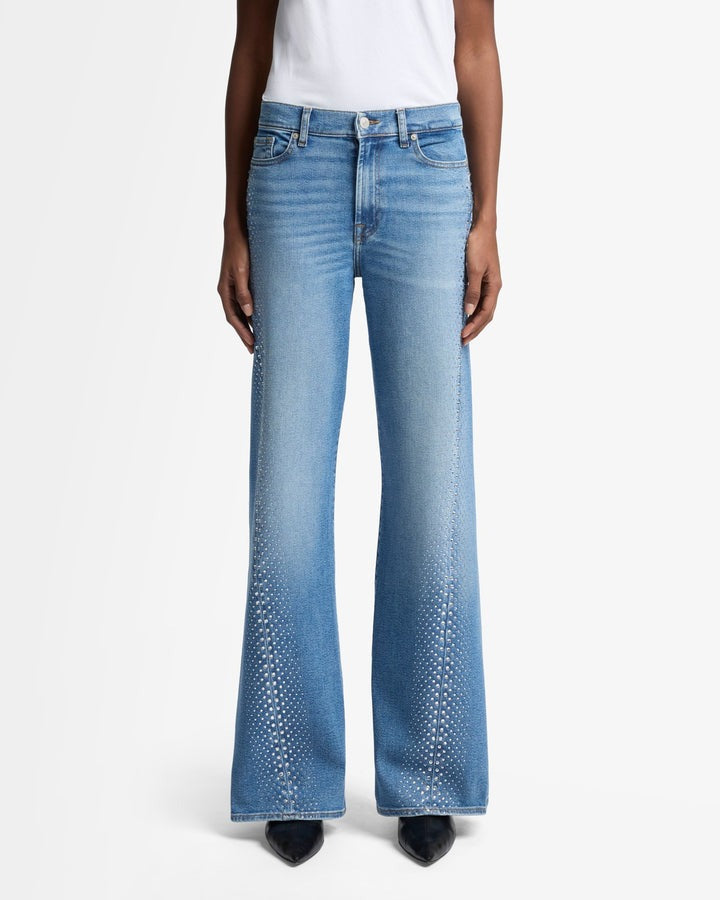 These 7 For All Mankind Twisted Lotta in Love Soul jeans feature a flattering high rise and relaxed wide legs, enhanced by a unique twisted seam that offers a contemporary twist on classic denim. Crafted from medium-weight fabric with a cozy softness and subtle stretch, they provide luxe, lived-in comfort ideal for all-day wear while maintaining a polished appearance.